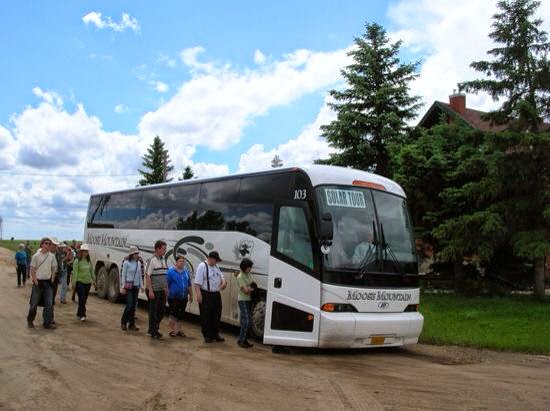 Four hours and nine minutes after the sun’s zenith for 2014 (9 am, Saturday, June 21), a touring bus rented from Moose Mountain Bus Lines left Candy Cane Park in Regina for the morning run of the all-day 5th Annual Saskatchewan Solar Tour. Half of the volunteer tour steering committee members were in attendance: Megan Duchek, Jody Broughton, and me (David Orban). After days of rain, the skies were blue.